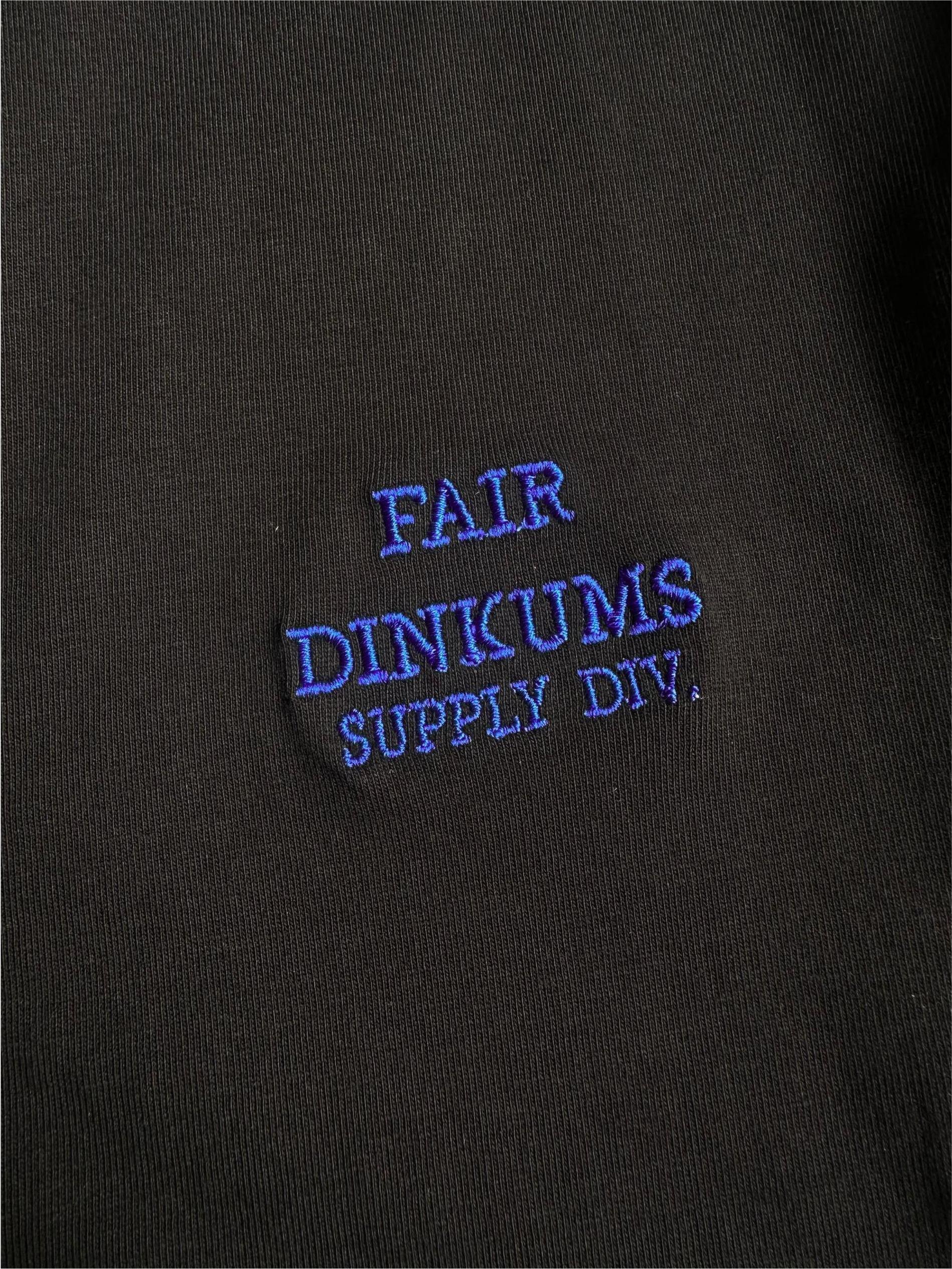 - Detailing: Blue embroidered Fair Dinkums Supply Div. logo on chest